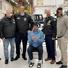 أعقب ذلك نشر ترامب أول صورة لنيكولاس مادورو مكبّل اليدين ومعصوب العينين وعلى أذنيه سماعة واقية من الضوضاء.
