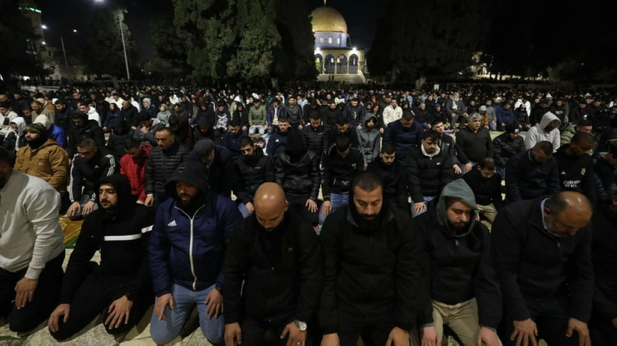 وقالت دائرة الأوقاف الإسلامية بالقدس، إن 60 ألف مصل أدوا العشاء والتراويح في رحاب المسجد الأقصى، رغم القيود والإجراءات المشددة التي فرضتها قوات الاحتلال الإسرائيلي على دخول المصلين، ومنعها لفلسطينيين من الضفة الغربية من الوصول إليه.